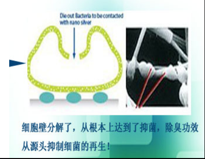 2、带正电荷的银离子与细菌蛋白酶中带负电荷的巯基发生反应,蛋白酶因巯基的丧失而迅速失去活性,从而导致细菌无法进行分裂繁殖而被杀灭。